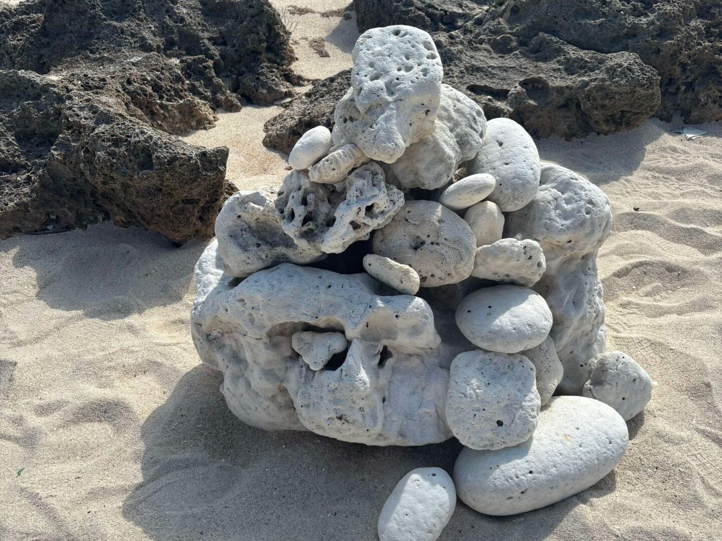 浜辺にたくさんあるま〜るい白い珊瑚石には