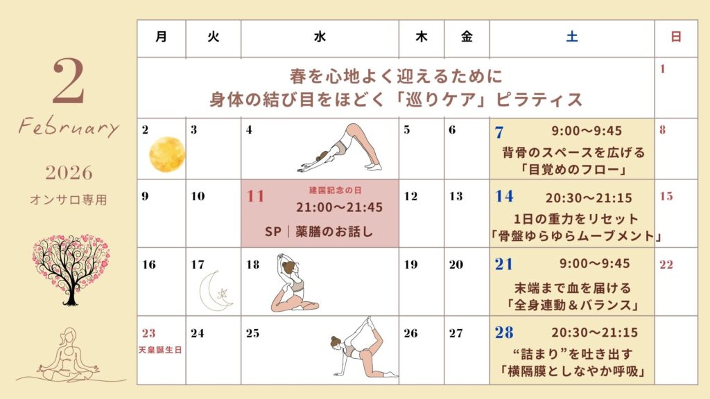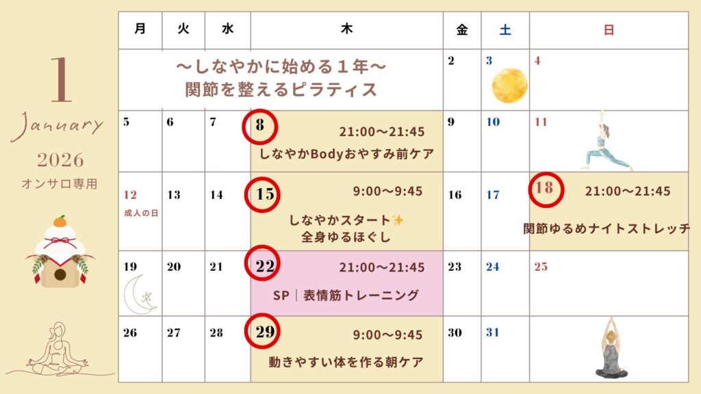 メンバーの方は月4回開催されるピラティスとストレッチのLIVEレッスンに参加可能。不定期開催も行っています。